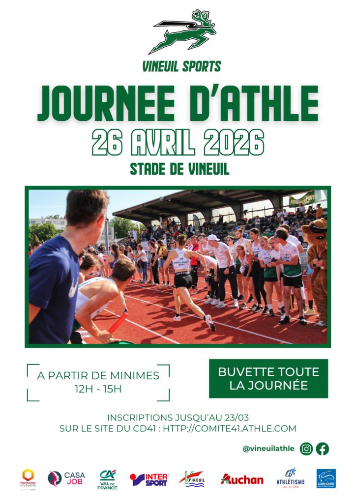 Le club de Vineuil inaugure cette nouvelle saison estivale en vous proposant un Meeting de rentrée le dimanche 26 avril 2026 au stade municipal de Vineuil de 12h à 15h30 !