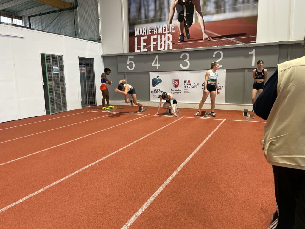 Camille Le Roux (ES) réalise 5,99m en longueur et 7’’76 au 60m, une rentrée convenable avec des perfs qui ne demandent qu’à être améliorées.